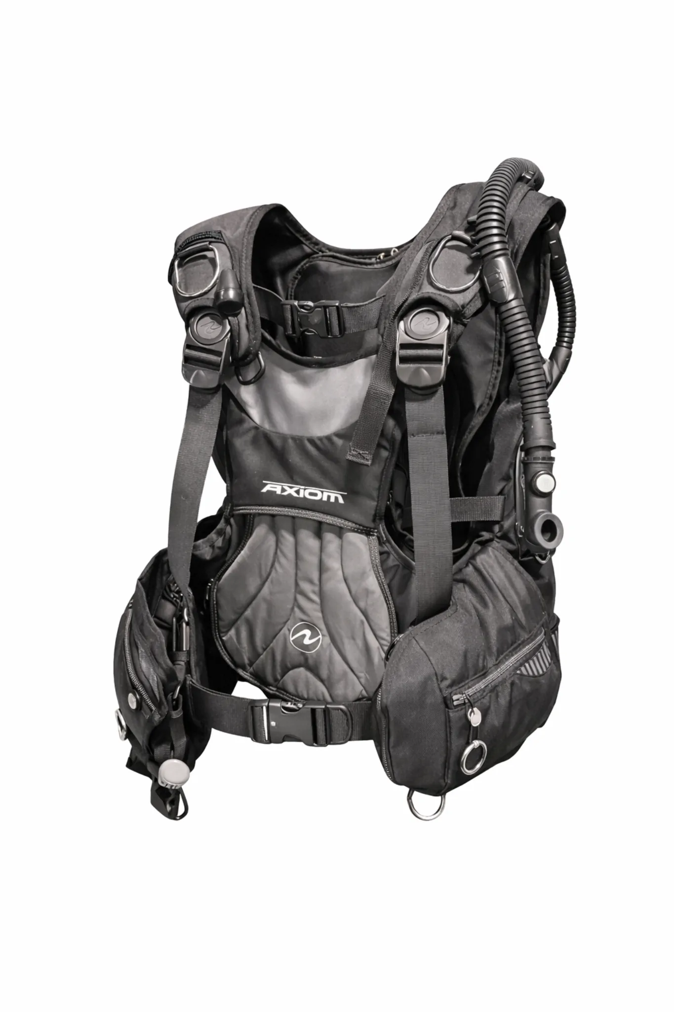 Tarierjacket / BCD der Marke Aqualung, Modell Axiom, in Schwarz/Grau.